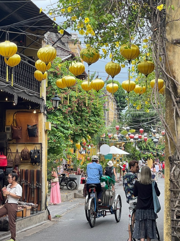 Facendo un primo giro nel pomeriggio del nostro arrivo, ci siamo trovati di fronte un gruppo di cinesi in rickshaw sul lungofiume. Saranno stati almeno una trentina e quindi abbiamo visto sfilare, uno dietro l’altro, una parata di circa trenta rickshaw. Uno spettacolo divertente, ma che mi ha subito fatto capire che aria tira a Hoi An.