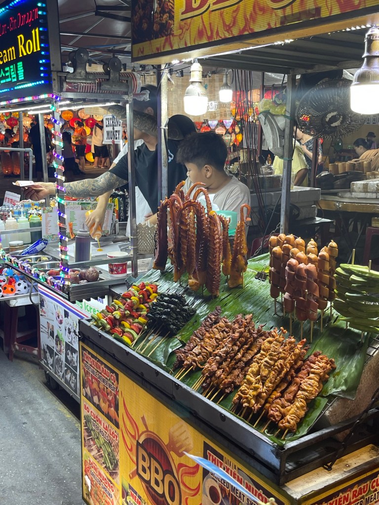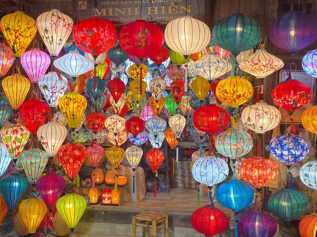 Appena raggiunta la zona dei negozi ho iniziato a notare tutti questi sarti e poi i souvenir e i prodotti che piacciono ai turisti. E lampade, lampade appese ovunque, ad ogni angolo. Tutto molto bello e colorato..ma finto! Ogni cosa sembra sia messa lì apposta per i turisti, per dar loro l’immagine stereotipata del Vietnam che hanno sempre sognato.