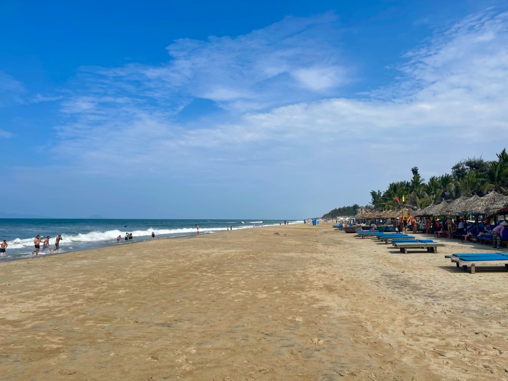 La spiaggia di An Bang non è paragonabile a quelle paradisiache della Thailandia o dei Caraibi, ma è comunque una bella spiaggia contornata da palme, con la sabbia fine, l’atmosfera informale, vagamente hippie, e poi c’è un sistema di noleggio ombrellone davvero fantastico. In pratica ogni bar e ristorante ha la propria attrezzatura da spiaggia e basta consumare qualcosa per poterne usufruire. Noi, alla fine di un viaggio in Vietnam meraviglioso ma stancante, volevamo concederci qualche giorno di relax al mare e An Bang è stata la scelta giusta. Si può alloggiare anche direttamente vicino alla spiaggia, ma noi abbiamo preferito restare a Hoi An, che comunque è vicinissima.